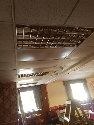 Our in-ceiling infrared panels were installed into the suspended ceiling grid with a thermostatic control timed to operate the heating on the day and time the heating was needed with frost protection as default for all other times. The Installation was carried out professionally by MES Electric and Solar Ltd.